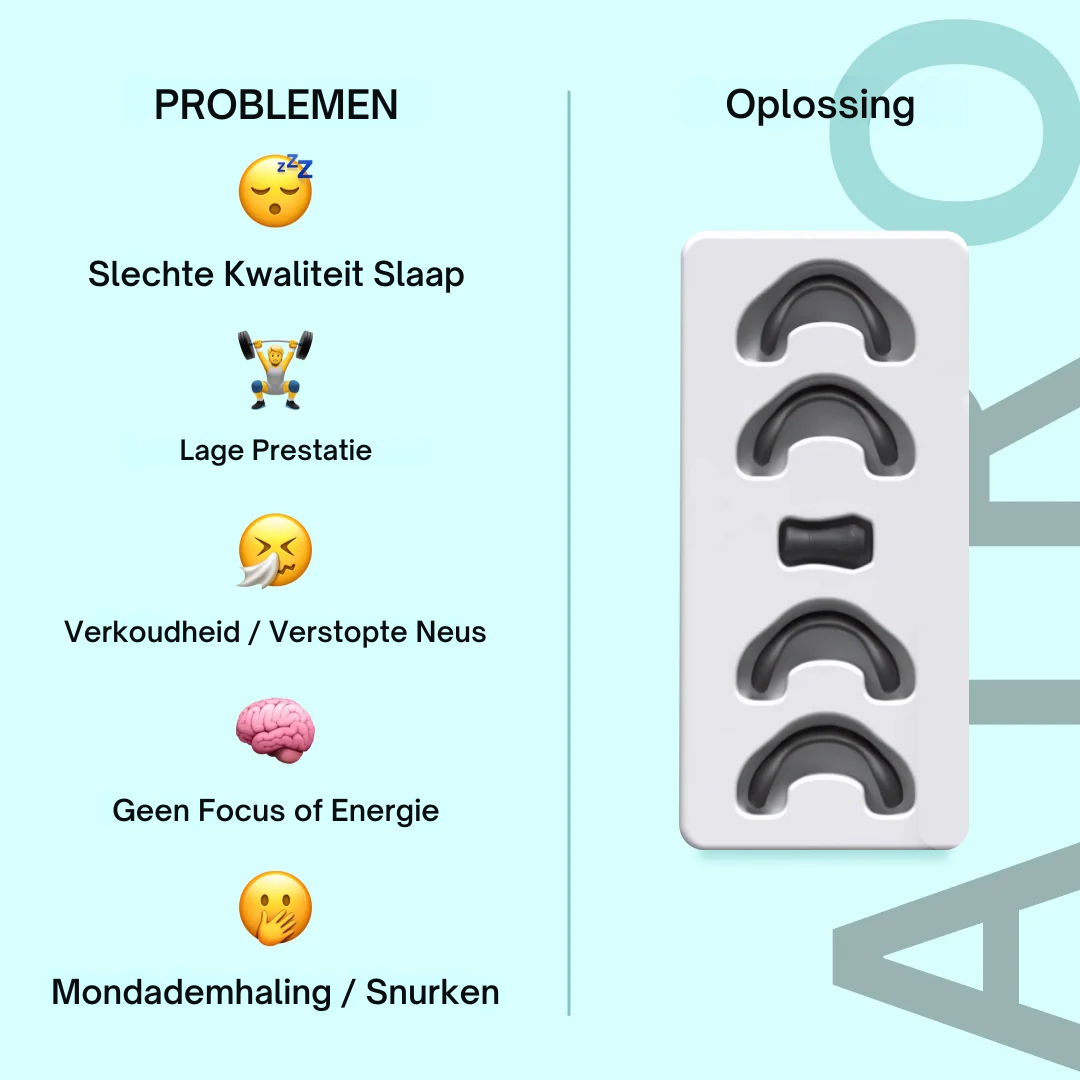 In tegenstelling tot ouderwetse neusstrips die loslaten, irriteren of nauwelijks werken, biedt Airo™ een elegante oplossing die echt effect heeft.