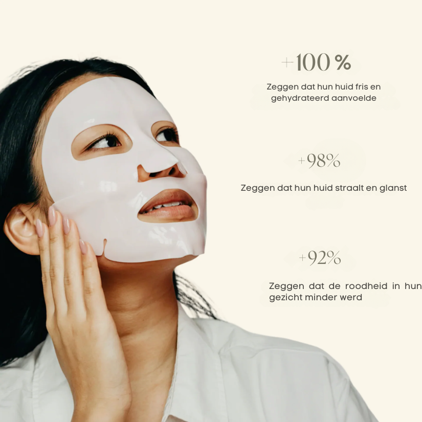 Aanbrengen – Breng de maskers 1–2 keer per week aan op een gereinigd gezicht.