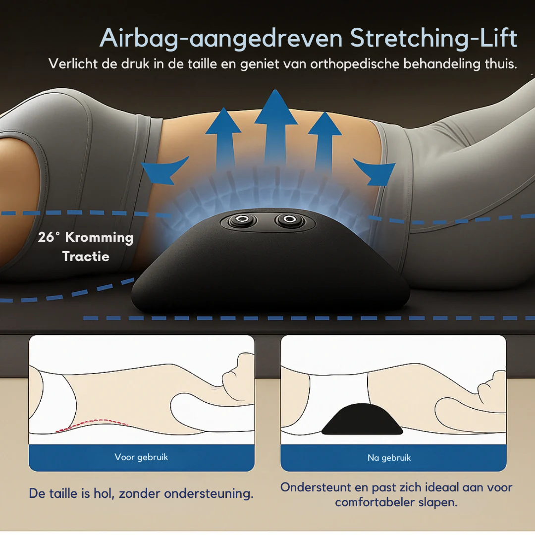✅ Tractie Lifting (26° stretch): verlicht werveldruk, verbetert je houding en geeft je ruggengraat weer ruimte.