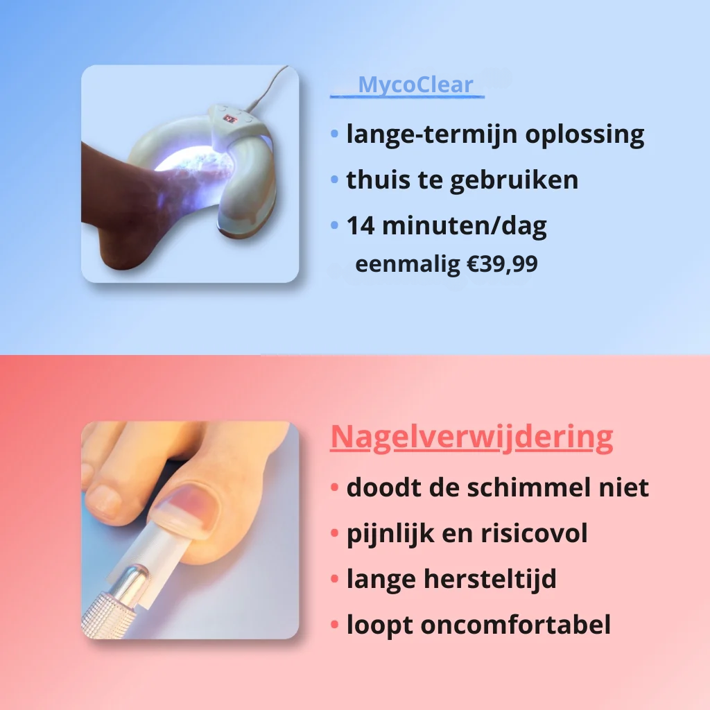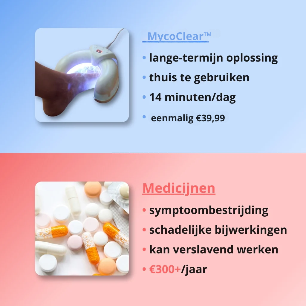 Met MycoClear™ – 3-in-1 therapie apparaat pak je de oorzaak van het probleem aan, veilig en effectief, gewoon bij jou thuis.