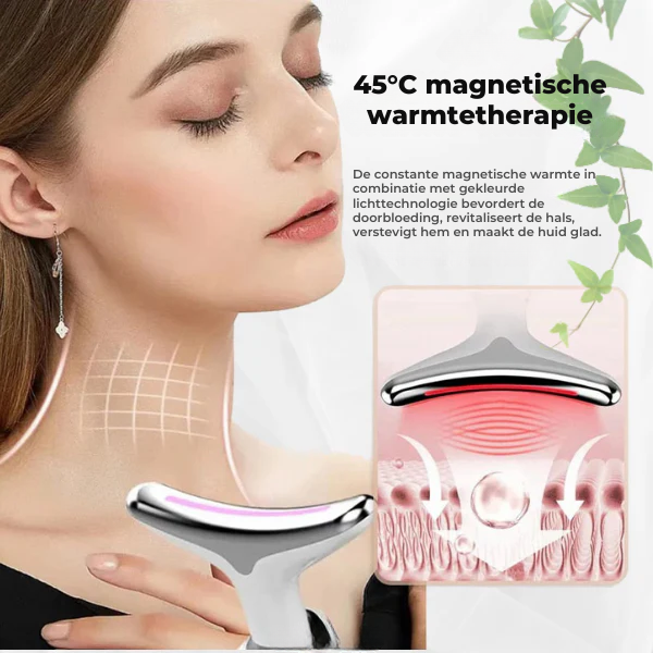 Iedereen boven de 40 kent het gevoel: de huid rond hals en kaaklijn wordt slapper, de contouren vervagen en het profiel lijkt minder gedefinieerd. Behandelingen in de kliniek of salon zijn vaak duur en tijdrovend. Maar wat als je hetzelfde resultaat gewoon thuis kunt bereiken – veilig, eenvoudig en zonder pijn?